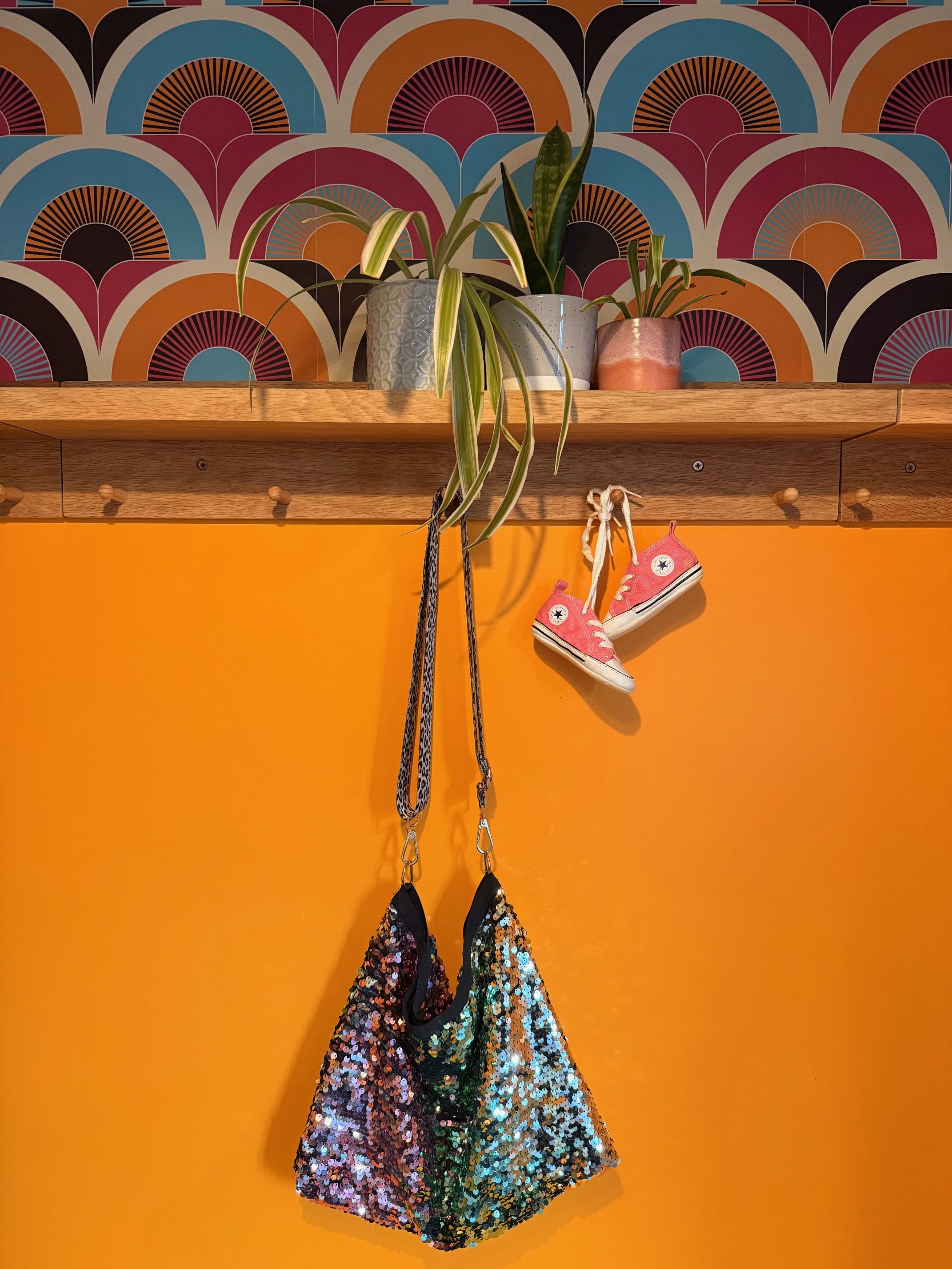 A playful retro entrance pops with bold colours, quirky curves and nostalgic charm.